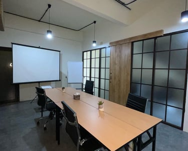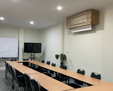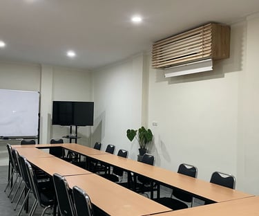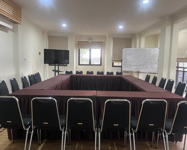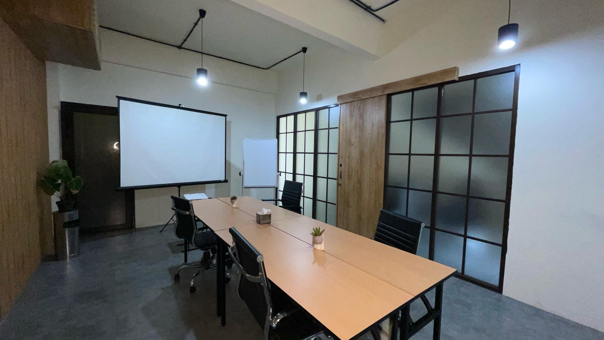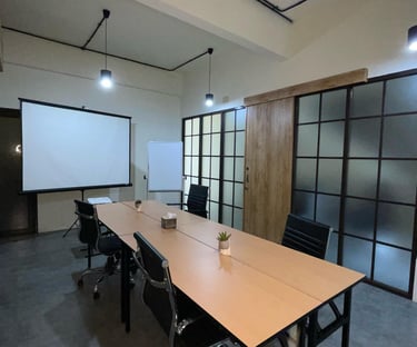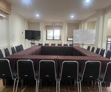 Ruang meeting nyaman dan profesional, dilengkapi fasilitas lengkap untuk rapat, presentasi, dan diskusi bisnis yang produktif.